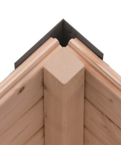 L’abri de jardin Jupiter est réalisé en épicéa nordique de 19mm. Les madriers s’emboîtent parfaitement pour un montage solide. Dans le cas du bois brut, vous devez lasurer les madriers avant le montage. Lorsque vous choisissez l’abri peint, il est déjà protégé contre les intempéries grâce à sa peinture de qualité, totalement écologique. La finition des coins et du cadre de la porte est en acier pour une longévité accrue. Le toit est couvert d’un tôle trapézoïdale de 0,5mm et possède de larges débords en acier pour une protection optimale contre les intempéries. Les détails en acier ne demandent aucun entretien ce qui est pour vous un gain de temps important.