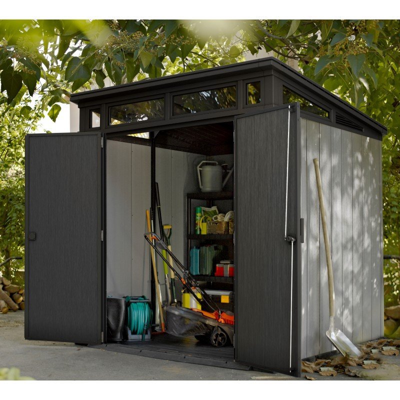 Fonctionnel et esthétique, cet abri de jardin de 4,7m² Keter s’intégrera d’une manière naturelle dans votre jardin grâce à son design innovant qui rappelle l’aspect vieilli du bois. Pour un look personnalisé, vous pourrez peindre les parois grises dans une autre couleur de votre choix.