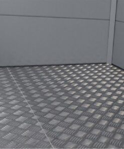 La double porte à 3 charnières dispose d’une ouverture vitrée en plexiglas de 4mm d’épaisseur qui fournit un apport naturel de lumière. Une serrure à cylindre avec jeu de 2 clés protégera vos biens de toute intrusion. Les panneaux des parois ont une épaisseur de 0,9mm qui peut être isolée grâce aux parois internes disponibles en option, et les panneaux de toiture sont épais de 40mm avec isolation incluse.