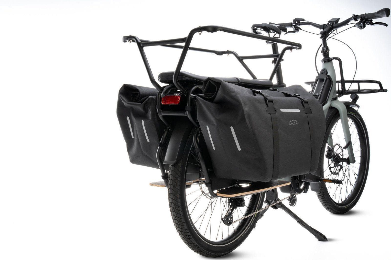The ACID Pannier Bag PRO 45/2 Longtail was designed especially for the luggage carrier of the CUBE Longtail Hybrid bike. It has a waterproof welded construction using abrasion-resistant outer material for maximum longevity. The bags attach securely to the luggage carrier using touch fasteners without impeding freedom of movement. Great for adding lots of storage space with a clever interior that keeps even small items organised and easy to find when you need them. Reflective details improve visibility on the roads in low-light conditions.