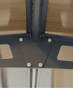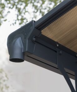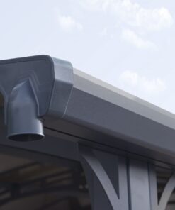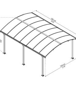 Canopia by PALRAM carport avec une armature en aluminium peint de couleur grise – avec connecteur au sol en acier galvanisé -panneaux en polycarbonate semi translucide ultra résistant de haute qualité – resistance de charge 150kg/m² – gouttière incluse – facile à monter.