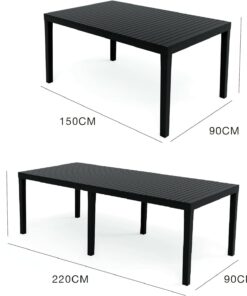 - STRUCTURE ET UTILISATION – Table d’extérieur avec structure résistante en plastique renforcé – équipée d’une rallonge centrale de 70 cm et de 2 pieds supplémentaires qui garantissent sa stabilité – Produit avec une finition effet lattes, qui garantit confort et style – Produit parfait pour meubler avec élégance votre extérieur espace, jardin, balcon ou véranda – Produit polyvalent qui peut être combiné avec différents types de chaises, peut également être utilisé à l’intérieur – Produit peu encombrant idéal pour accueillir jusqu’à 10 personnes pour le déjeuner