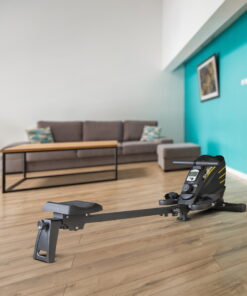 Rameur magnétique à tirage central offrant une expérience fluide et efficace grâce à une résistance réglable manuellement sur 8 niveaux et une roue d’inertie de 10 kg.