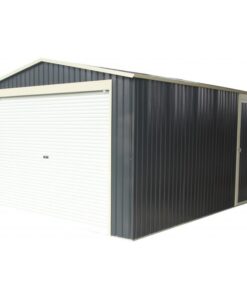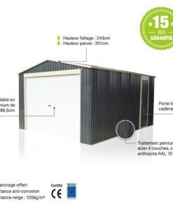Garage métal anthracite 19,52m² porte enroulable + kit d’ancrage