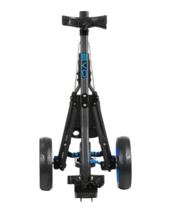 Le porte-carte intégré rassemble de manière pratique balles, tees, carte de score et crayons. La roue avant escamotable facilite le pliage du chariot, tandis que les trois roues démontables assurent un transport facile et une maniabilité optimale sur tous les terrains.