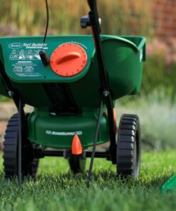 Le mini épandeur Scotts Turf Builder Edgeguard distribue uniformément l’engrais ou les semences de pelouse sans avoir à tourner de manivelle.