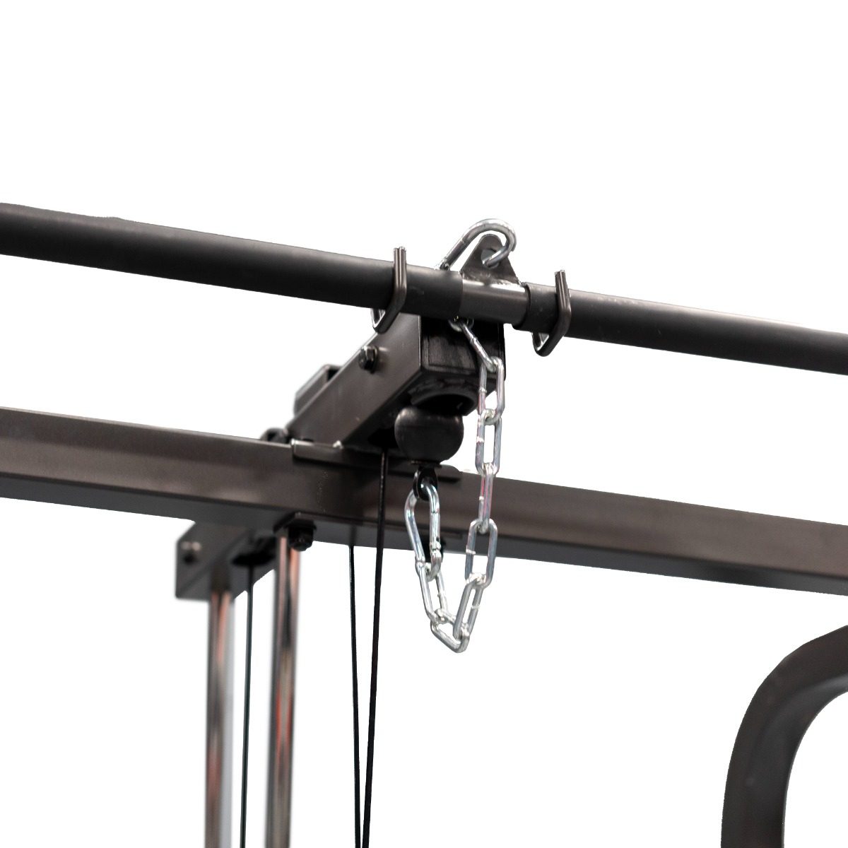 Il est doté d’un système de poulies hautes et basses. Cette combinaison offre une large gamme de mouvements, s’adaptant aux différentes routines d’entraînement et permettant un développement musculaire complet.