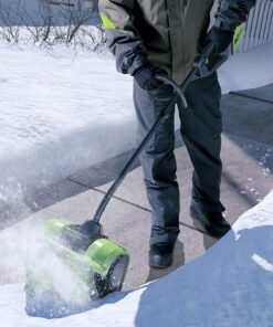 Pelle à neige sans balai Greenworks Pro 60 V 12 po qui peut facilement pelleter 12 po de largeur et 6 po de profondeur dans la neige dans les espaces les plus étroits. Pelle à neige qui dégage les terrasses, les patios, les allées et les entrées qui peuvent accueillir jusqu’à 2 voitures avec une hauteur de 20 pieds. Sans fil, démarrage par bouton-poussoir, facile à ranger, entretien réduit; c’est une pelle à neige électrique simplifiée. Pelle à neige alimentée par batterie qui est compatible avec le système Greenworks 60 V de 75 outils et batteries et bénéficie d’une garantie limitée de 4 ans.