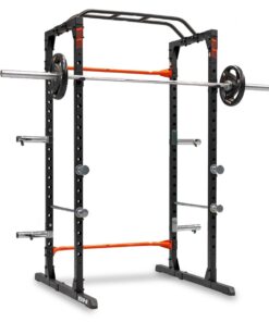 La Power Cage a été conçue pour réaliser des entraînements avec poids libres et fonctionnels dans un environnement sécurisé grâce à sa construction et ses barres de sécurité latérales ou spotters. De plus, il vous permet de stocker vos disques dans les supports qu’il inclut. Barre et disques olympiques non inclus.