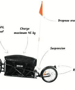 Idéale pour transporter des courses, des enfants ou des équipements de camping, elle garantit stabilité et sécurité pendant vos trajets. Avec des roues robustes et une capacité de charge variable, la remorque vélo est un allié incontournable pour les cyclistes recherchant une solution de transport flexible et fiable.