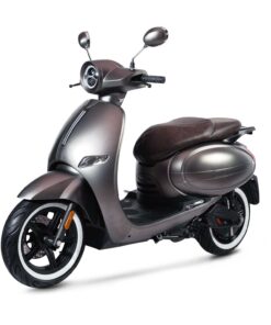 Le LVNENG S6 est un scooter électrique équivalent 125 cm3. Néo-rétro, dans son style, il frise la perfection grâce à ses pneus à flanc blanc et à sa selle vintage biplace. Sa vitesse maximale est de 75 km/h et son autonomie réelle est de 70 km d’autonomie en mixte.