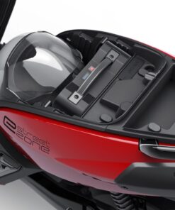 Ce nouveau modèle est homologué deux places et reçoit donc une selle suffisamment longue et large pour accueillir deux personnes. Côté passager, le e-Streetzone est équipé d’un repose-pieds escamotable aluminium et d’une poignée de maintien.