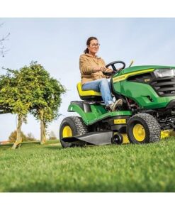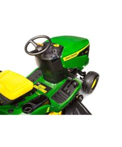 La tondeuse autoportée John Deere X107 est conçue pour offrir une utilisation plus confortable, grâce à une ergonomie soignée et des commandes intuitives, facilitant la prise en main au quotidien.