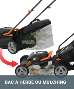 Polyvalente : La tondeuse Worx vous permet de récupérer la pelouse tondue grâce à son bac de récupération de 45L, ou alors d’effectuer un mulching pour une pelouse plus saine permettant d’enrichir le sol en nutriments.