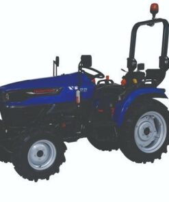 Tracteur compact de 24,5 CV. Equippé de barre de sécurité escamotable, gyrophare, éclairage latérale, lampe de travail, phares projecteur et valve double fonction. Disponible avec pneux agricoles, radiales, industie et gazon.