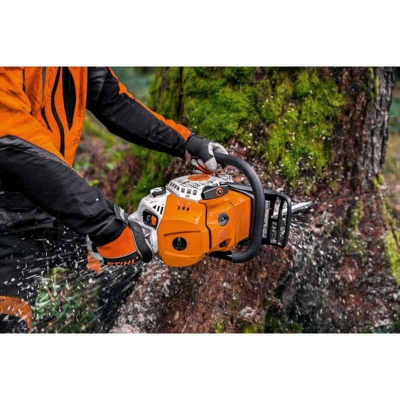 Véritable innovation, la STIHL MS500i est la première tronçonneuse au monde dotée d’un système d’injection à commande électronique. Lors de la récolte de gros bois, cette machine puissante est facile à manier pour découper le bois. Grâce à son accélération vertigineuse et à son comportement dynamique pour le changement de direction de coupe, la MS 500i est parfaitement adaptée non seulement à l’abattage et la découpe, mais également à l’ébranchage. Le dosage de carburant effectué par capteur garantit une puissance moteur optimale et un démarrage exceptionnel, quelles que soient la hauteur et la température ambiante. La suppression du levier de démarrage garantit en outre un démarrage des plus simples dans toutes les conditions d’utilisation. Grâce à la technologie de moteur révolutionnaire pour les tronçonneuses et la conception légère et intelligente en résultant, on obtient le meilleur rapport poids-puissance du marché : 1,24 kg/kW.