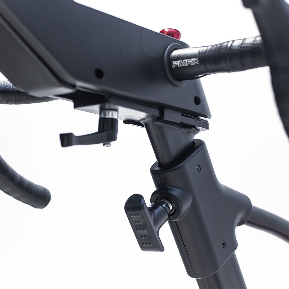 Guidon respirant et antidérapant. Les manettes du guidon ont une fonction pratique : offrir à l’utilisateur la possibilité de changer de résistance sans changer de position.